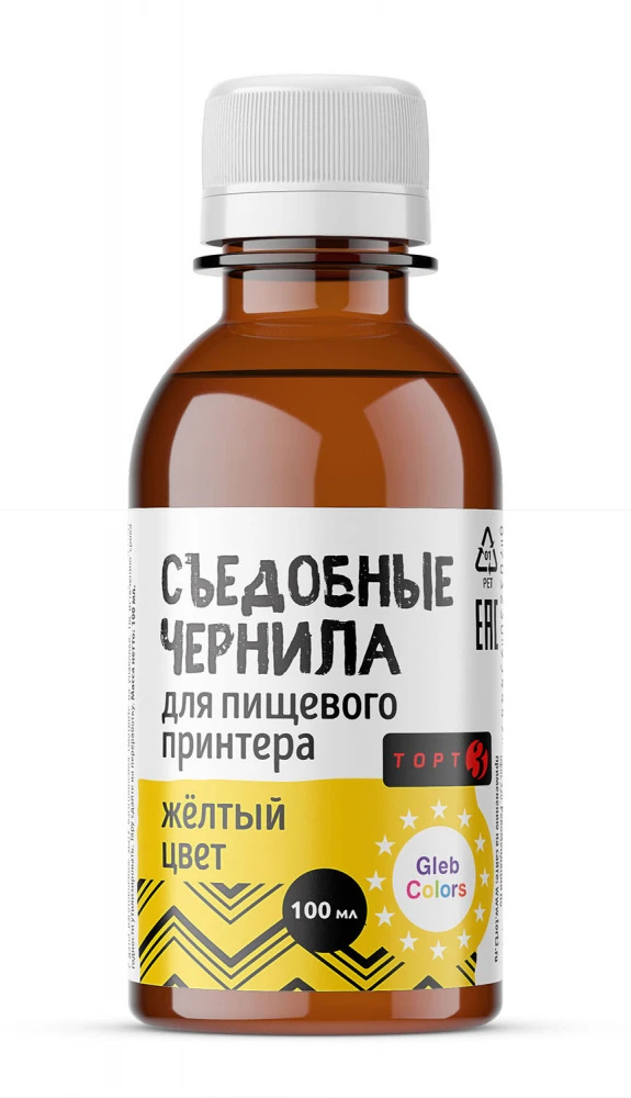 Съедобные чернила для пищевого принтера, желтый цвет 100 мл, марка Торт3 (Германия)
